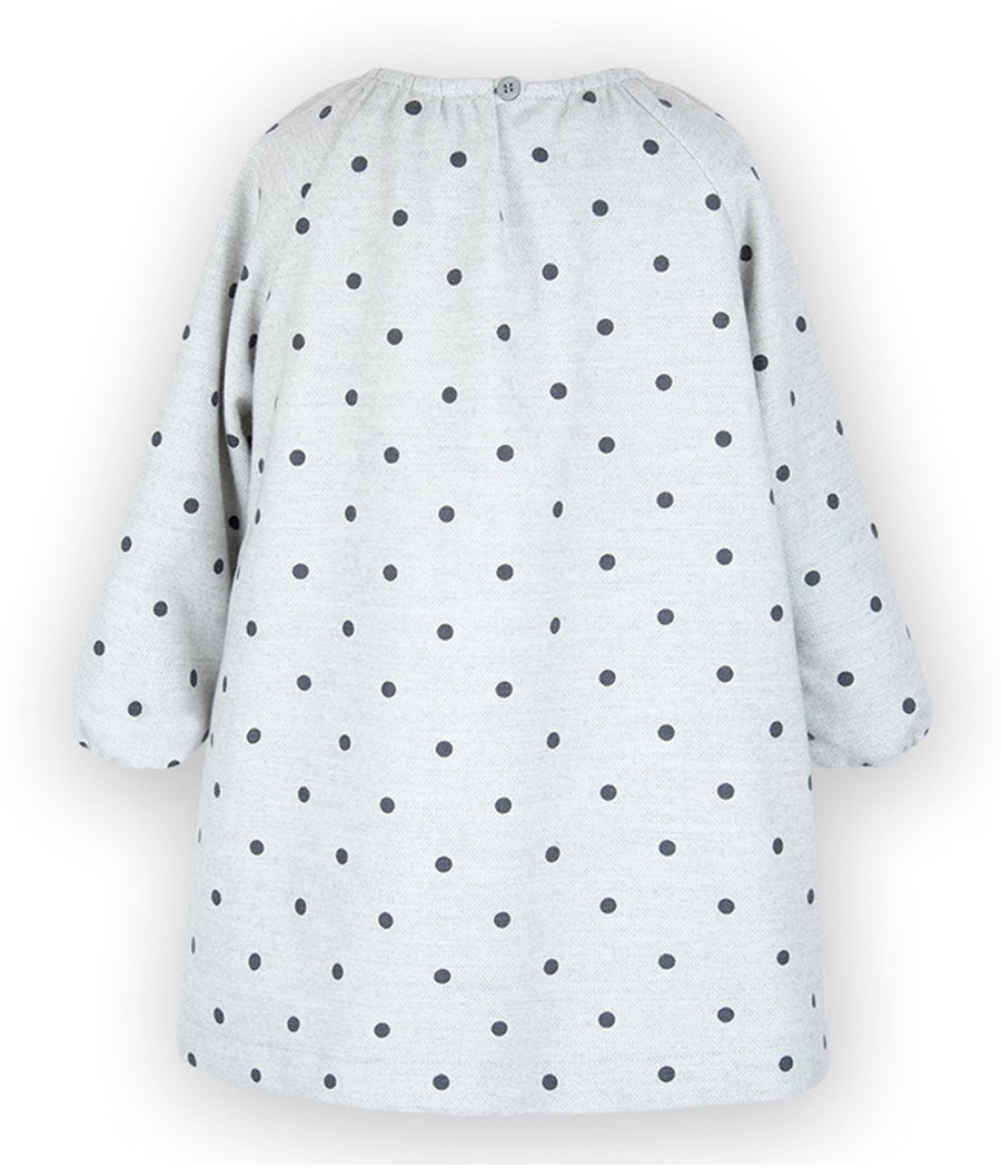Sukienka szara w grochy z bordową kokardą