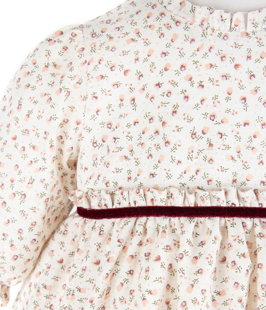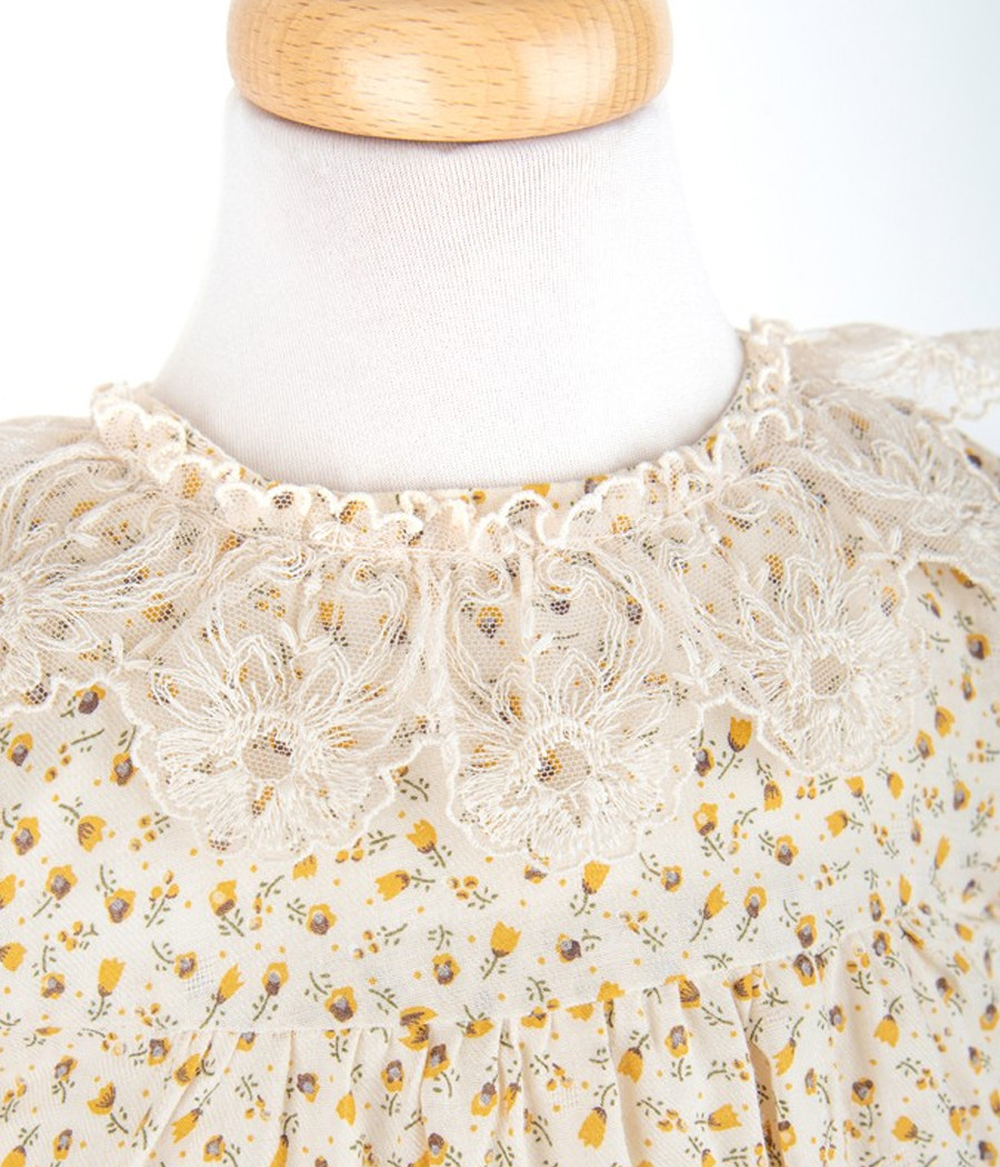 Sukienka w kwiatuszki z koronkowym kołnierzykiem